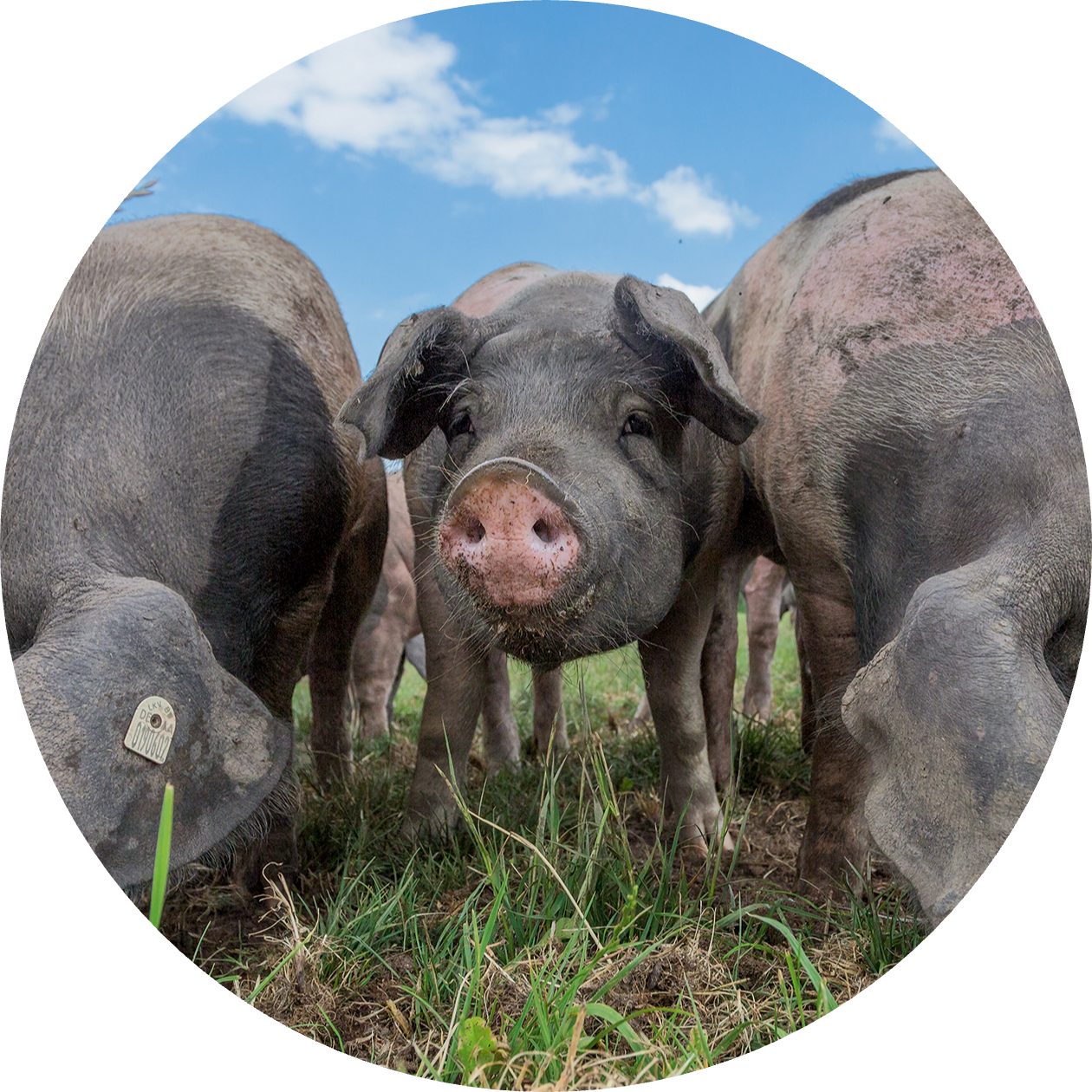 Unser Schweinefleisch stammt von der Bäuerlichen Erzeugergemeinschaft Schwäbisch Hall, die sich strengen Richtlinien verpflichtet hat und beispielsweise auf Antibiotika und Wachstumsförderer verzichtet. Zudem wird nur regional angebautes Futter ohne gentechnische Veränderungen eingesetzt.